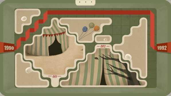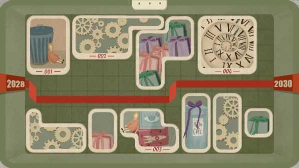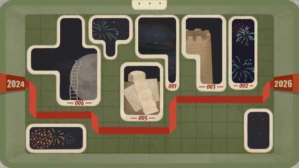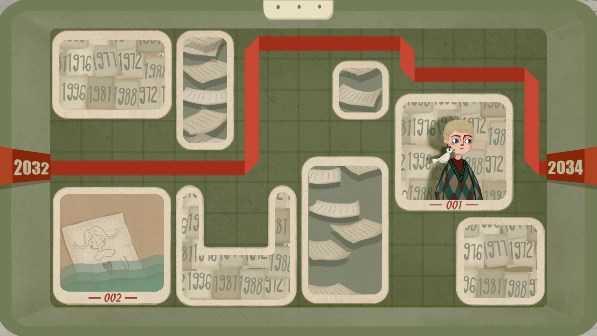 2、第一关需要将拼图移动成可以让两个时间之间的线能够穿过的形状