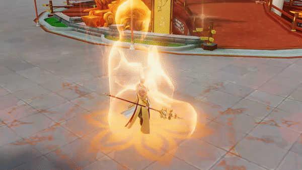 1、【乾坤佛至】凌空飞跃,向前方扫击,并造成大量伤害