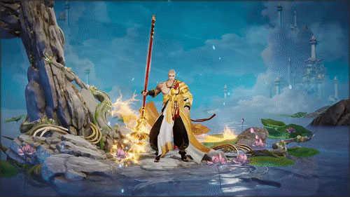 2、【佛怒金莲】以自身佛法召唤出佛法金莲,金莲击中敌人后还可以增强自身攻击力