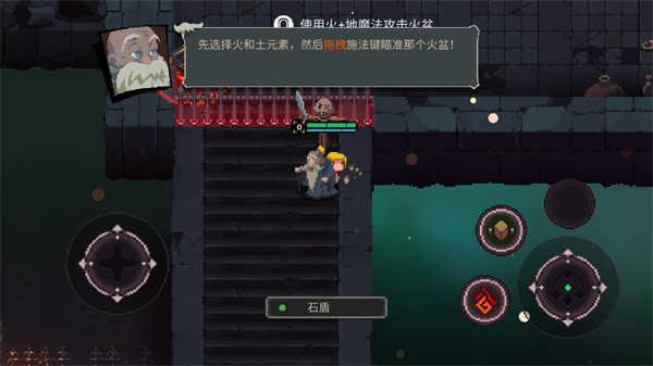 7、先选择火和土元素,然后拖拽施法键瞄准火盆就可以通关;
