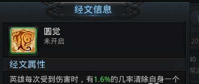 注解 :圆觉经文和楞伽经文是辅助型经文,两者都是受到伤害时有几率触发,不要因为1% 和 1.6% 的触发几率就小看他们,这是一星经文的效果,经文星级越高触发几率也会越高。