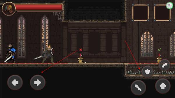 1、游戏内左边控制方向,右边分为攻击、防御、跳跃、滚动;