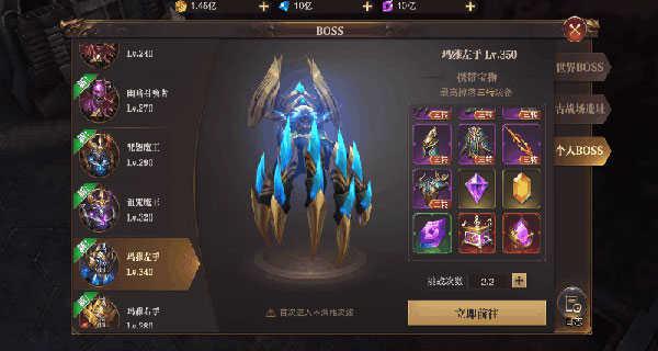 除去环类日常任务,玩家还可以每天中午12点和晚上8点打战盟boss,通过对boss的不同伤害获得翅膀合成道具、稀有宝石等道具。合成翅膀的稀有道具若是boos有掉落的话,会在本盟拍卖行集中拍卖,真是自己急需的,建议一口价拍下。