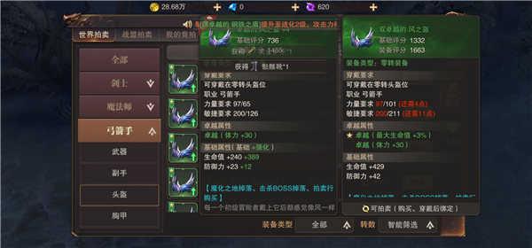 3、玩家可以通过装备强化、装备进化、装备追加等途径,来提升自身的装备属性效果。玩家要想获得各种装备,可以通过拍卖行购买、挑战BOSS掉落、通关副本等途径,来获取一些装备。