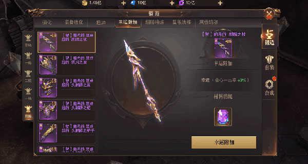 一个装备的属性的强化,幸运,追加,卓越转移到另一个装备上,当玩家有更强力的装备,需要更换的时候,就可以使用这个功能,可以减少玩家的材料、货币的消耗。