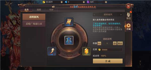 1、一代翅膀合成需要玛雅水晶以及玛雅宝石进行合成,不过几率比较低,想要提高几率就必须要放入装备,装备放入的越好越多几率也就越大哦。