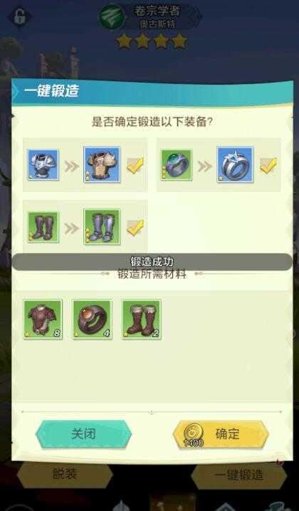 6、先点击一键装备,然后一键锻造就可以了,锻造后就可以提升战斗力了。