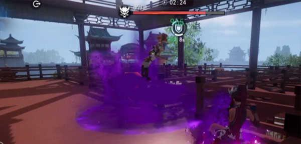 2技能:突击敌人,然后回旋踢,飞向空中扔出飞镖击伤敌人,完成连招后可以后撤较远距离。该技能十分的灵活,攻击后的后侧可以避免遭受敌人的反击。