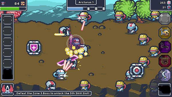 1、节奏紧凑的战斗场景,不断地关卡推进,众多的武器选择,不同的技能搭配。
