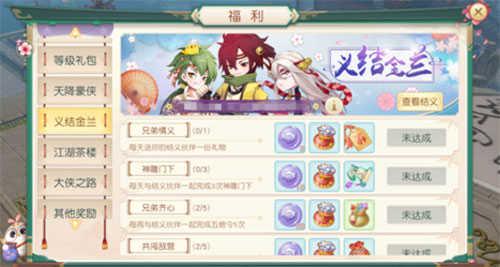 玩家与小伙伴们顺利结义后,可以在福利-义结金兰里查看各项结义专属福利活动,福利不断,好礼多多,快和结义的兄弟姐妹们一起来战吧!
