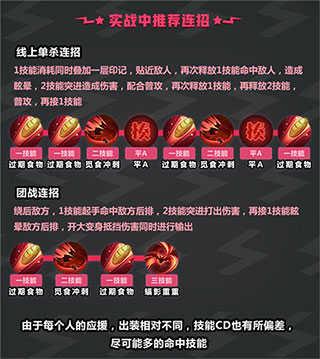 线上单杀连招:1技能消耗同时叠加一层印记,贴近敌人,再次释放1技能命中敌人,造成眩晕,2技能突进造成伤害,配合普攻,再次释放1技能,紧接释放2技能,普攻,再接1技能。一套下来,大招都不用开启已经伤害爆炸。