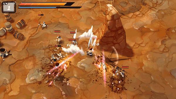 普攻:在移动状态中,如果目标进入角色的攻击范围内,角色就会自动攻击(角色完全停止移动时,不会作出攻击反应,即使目标在身前)。不同的武器伤害、攻击方式、攻速、攻击范围各不相同,针对不同的关卡选择武器或副将攻略会事半功倍。