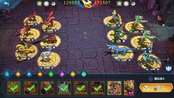 另外,这些从混沌日蚀中分裂出来的元素有着相生相克的属性——水克火,火克风,风克地,地克水,光暗互相克制。驯龙师们要记住,利用属性克制的元素种族去对战会更容易取胜,且相同元素的龙族一起上阵时会有属性buff加成哦~