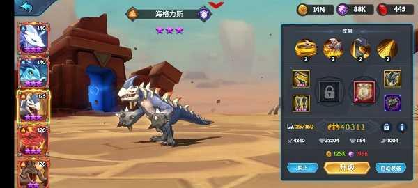看见右下角的自动装备了吗?使用自动装备,系统自动会为当前龙穿上最佳属性装备。