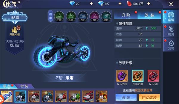 改造:座驾改造的材料是在各类活动中会有掉落的,座驾改造因为材料获取途径稍微小,但与之对应的战力提升也会相对的高