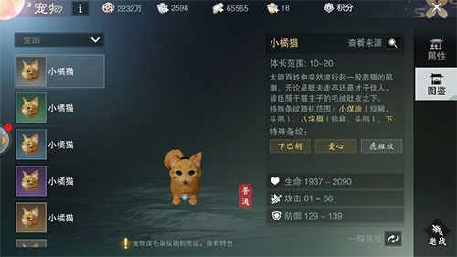 a、小橘猫(大橘为重,大橘为重!)15000银两/150元宝