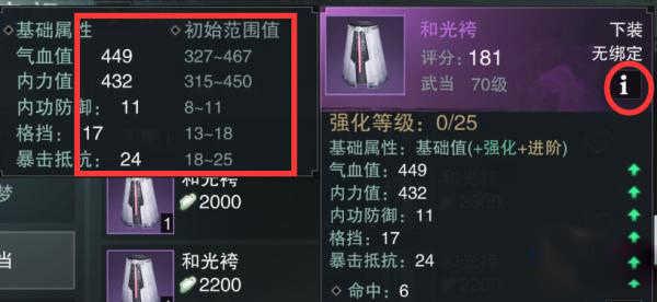(点叹号就能查看装备的基础值,左边是现在的基础,右边是满基础。集市的装备都要银牌才能买,注意一定要看好等级只有70级的副本装才能升级。)