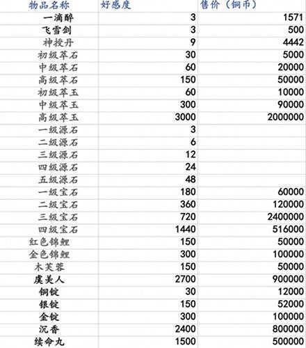 另外,还有特殊物品对好感度的增加(有的仅对于某个NPC)有奇效,小编就在这里给大家罗列整理出来啦: