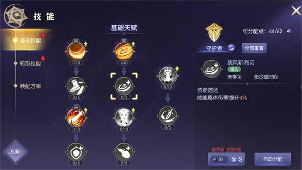1、首先需要提升的就是职业技能,无论选择哪一职业技能的加点都是重中之重,通过提升等级可以获得点数。提升等级之后的技能效果明显提高,首先需要加点的是5个主动技能,尽量选择自己优先使用的4个进行强化,然后是它们对应的被动效果。