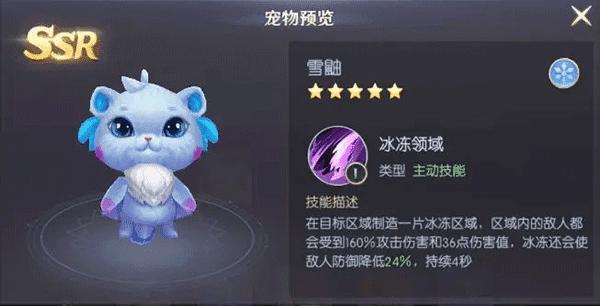 雪鼬作为输出宠物,可以对敌人造成群体伤害。伤害不低的同时功能性也拉满了,被雪鼬技能命中的目标还将在短时间内降低防御力,这样玩家自身的输出也将更进一步
