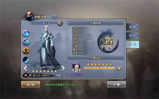 当玩家已经获得某一侠客的时候,后续再获得相同侠客将自动转换成该侠客的魂,魂是侠客升星的主要道具,满足系统要求的个数即可对侠客进行升星,升星之后侠客的战斗力会得到大幅加强