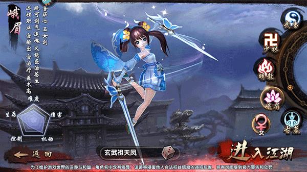 门内武学刚柔并济,威力非凡,讲求“化万法为一法,以一法破万法”。峨眉派武功介于少林阳刚与武当阴柔之间,以优雅、飘逸著称,远攻近战皆有所擅长,同时精擅诸多疗伤健体法门,在江湖中声望卓著。峨眉弟子既有伏魔之功,又有济世之术,是团队中不可或缺的人物,深得其他门派弟子的敬仰。