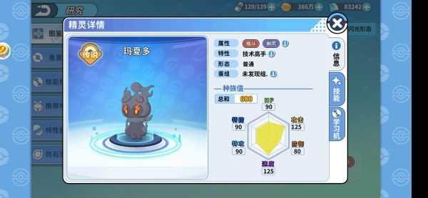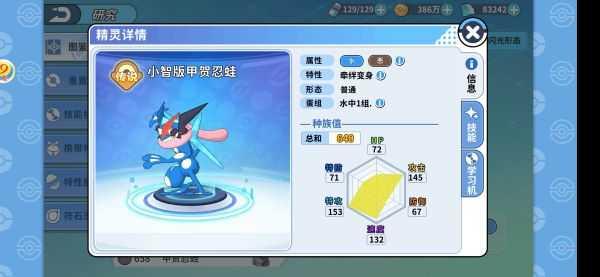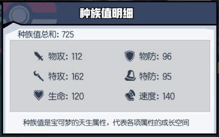 种族值总和:725(种族值是宝可梦的天圣属性,代表各项属性的成长空间)