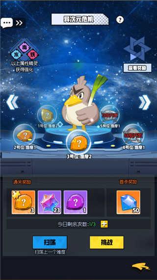 3、每天可以挑战/扫荡3次,次数耗尽可以花费钻石增加挑战次数