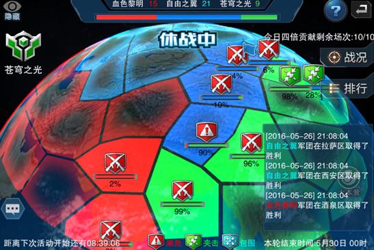 每个月,玩家会被随机分配在血色黎明、自由之翼和苍穹之光这3个军团的其中一个中,在大陆板块上争夺领土,为你的军团夺取资源!夺取到的资源将按周期回馈给玩家。