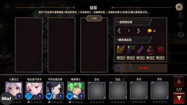 3、在进入副本前,搭配好阵容和补给,