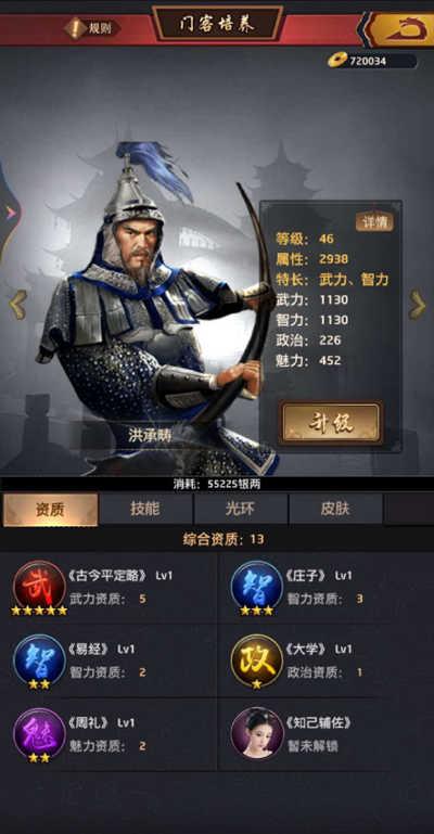 3、门客培养中最简单的方式就是对自己的门客等级进行提升,等级提升也是最简单的,只要使用金币就可以直接进行!