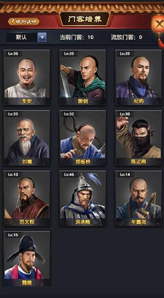 2、每个门客都是拥有自己擅长的领域,并且所有的门客属性都是进行叠加的。拥有的门客数量越多并且等级越高玩家的实力也会越高!