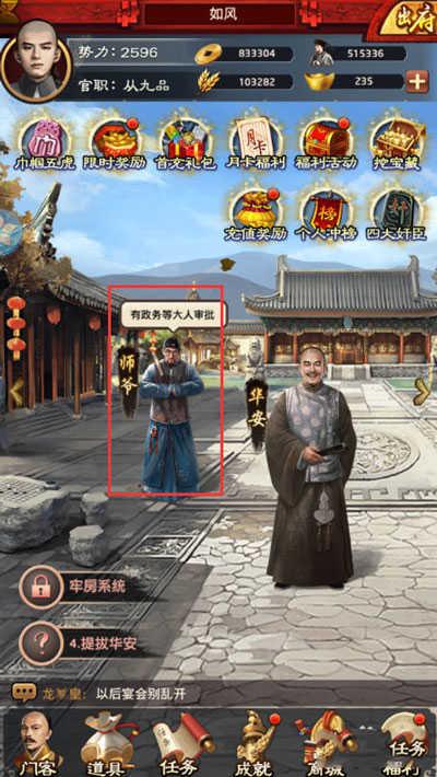 1、当有圣旨后会在府邸界面最左边显示传旨太监