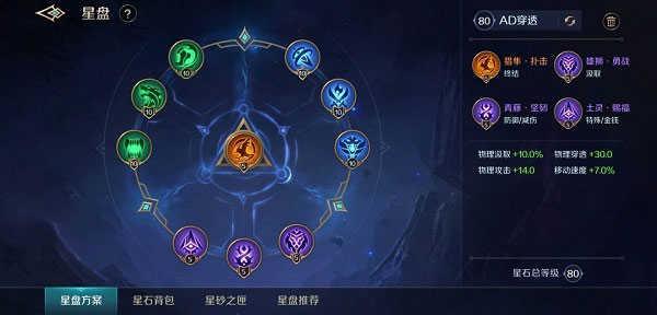 攻击属性只是星盘最基础的功能!绿色和蓝色的星石除了攻击属性外,还提供了防御属性和功能型属性(如移速、攻速、韧性等)紫色和橙色星石还会提供更加厉害的特殊功能!(如下图猎隼·扑击)