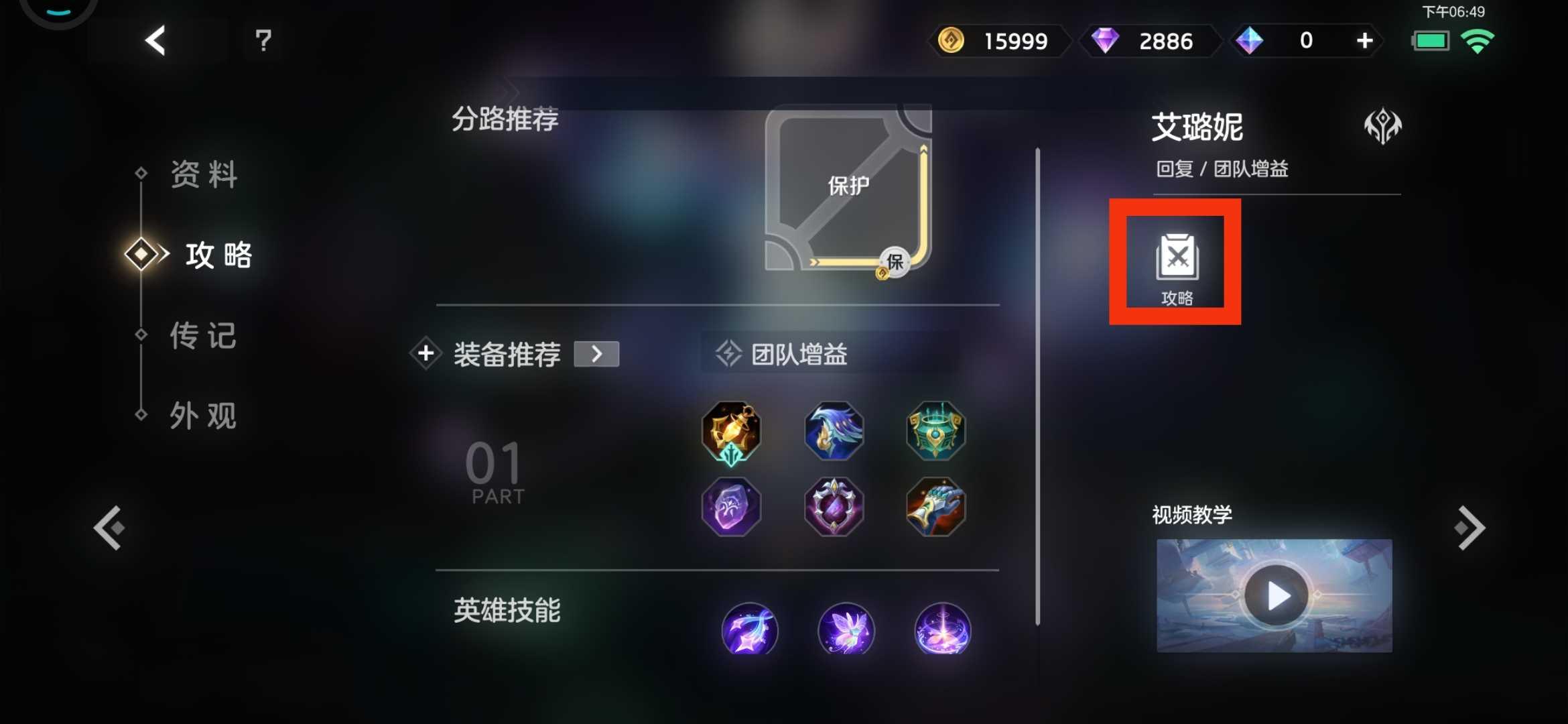 1、游戏大厅【英雄】-任意英雄【攻略】界面,就能查看英雄分路、装备推荐,文字或者视频攻略~