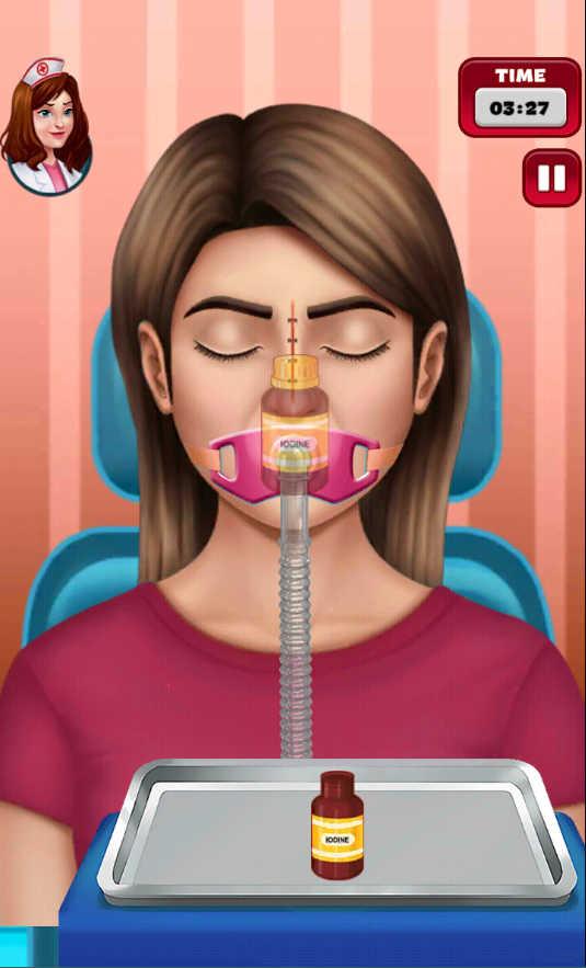 在这个医院游戏中,一名患者患有咽喉感染,您需要对他们进行良好的治疗才能在离线医生游戏中恢复健康。对于喉咙问题,患者的耳朵和眼睛也可能会出现问题,因为它们是相互关联的。请咨询耳鼻喉科(耳鼻喉科)外科医生,以执行急诊咽喉手术模拟住院手术模拟器游戏。