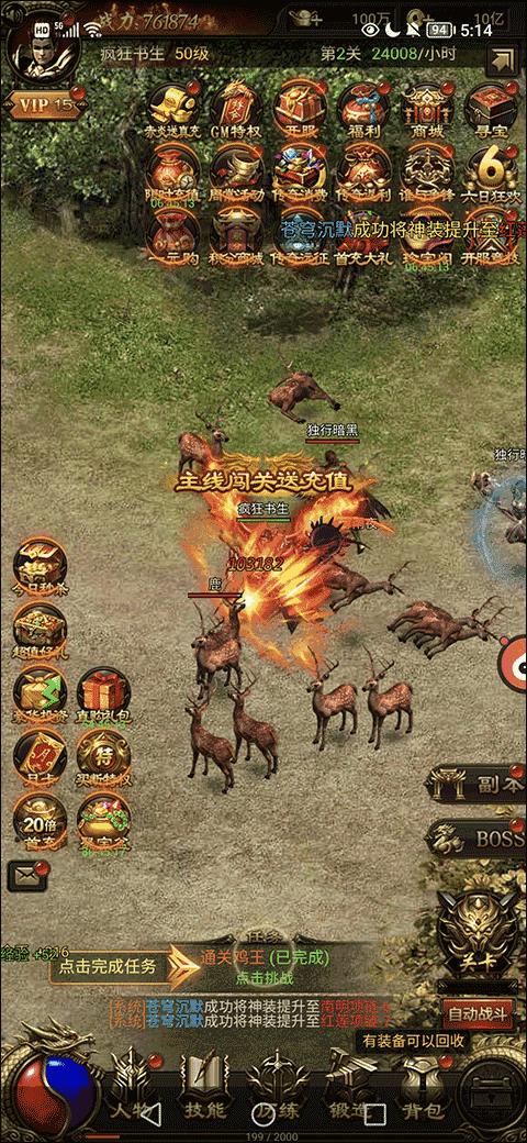 4、开始游玩后,游戏会自动开始打怪,可以很快就上手