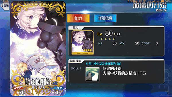 这件礼装是今天登录赠送的礼装,能增加友情点获得,以及ATK50,HP50的加成,这种礼装属于收藏型的礼装,具有纪念价值。