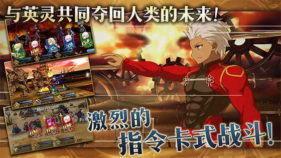 在战斗画面中点击右下角的攻击按钮即可进入指令选择阶段,玩家在该阶段中可以选择不同指令卡进行攻击。在下方的指令卡属于普通指令卡,按照每名从者自带的5张指令卡总计3名从者15张指令卡的方式随机选择其中5张分配到该回合当中。而上方的指令卡则是宝具指令卡,当一名从者的充能到达100%或以上时该从者的宝具指令卡便会出现在指令卡列表中,宝具指令卡发动后将会消耗该从者当前所有充能值来发动一次足以扭转局面的宝具效果。
