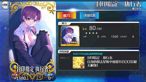 这件礼装满级ATK加成1500,满破技能怎家800%的暴击星集中,这张卡的作用是在队伍中有能打暴击星星的英灵,佩戴者拥有较高攻击时使用。绿卡英灵打出暴击星,输出英灵使用暴击星,获得暴击加成。