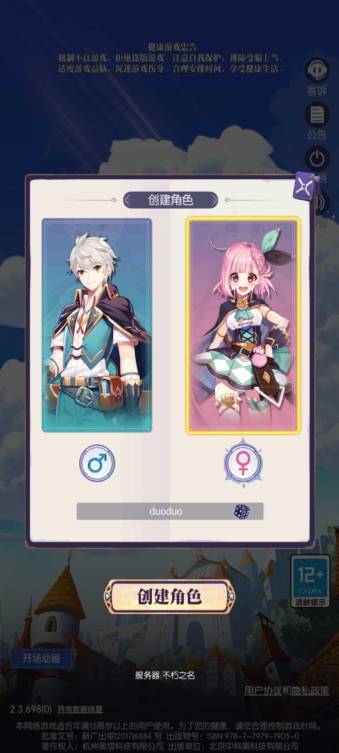 ③登入进去第一件事就是创建角色,选择性别女,取个昵称