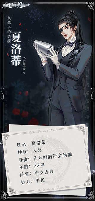 夏洛蒂,和往常一样,站在灰鸽子吧台后侧,打量着她所撑起的这一方天地中来来往往的过客。一直以来,仆人都只是主人们的工具,而夏洛蒂守护着这个城市中,属于他们的、唯一的自由空间。她锐利的目光,能穿透虚伪言辞和款款笑容,而她老练的手段,又能隔绝威胁和敌意。这次,她的目光放在了一名红发少女身上……也许,她可以带着她一起走进新的天地。