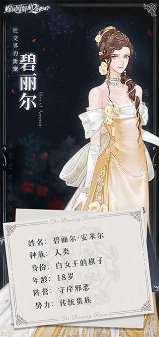 这名年轻的淑女是安米尔伯爵唯一的女儿。当她来到罗萨拉城、站在明亮的舞池灯光之下,她含羞的眼眸、微笑的嘴唇,她温柔的谈吐和得体的礼仪,无一不向人展示着她的良好教育和优渥家境。是的,她是一名真正的、传统的贵族淑女,她将为女王献上一切。