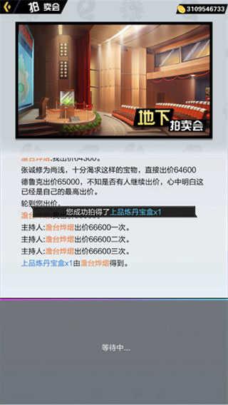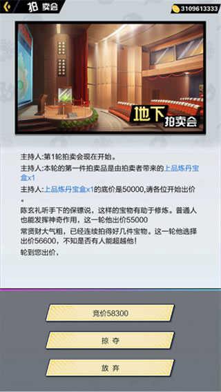 地下拍卖会是修真者跟系统的NPC进行叫价争夺物品,可在几番叫价之后选择跟价或者放弃,如果修真者觉得自己实力可行,可以选择出手抢夺强行获得心动的拍卖物。
