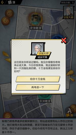 修真者们可以通过右上角的“训宠大师”花10万金币购买一只宠物。