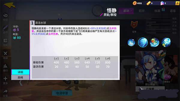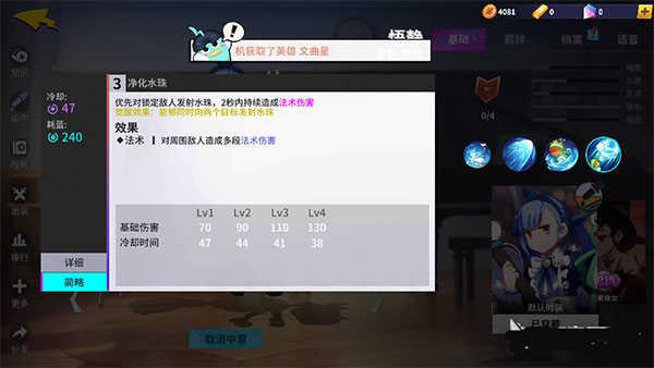 三技能净化水珠,优先对锁定的敌人发射水珠,两秒内造成持续的法术伤害。
