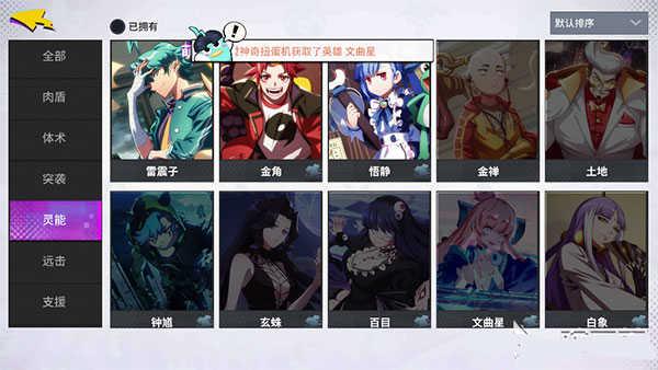 在游戏中,我们就可以查看英雄图鉴了,有肉盾、体术、突袭、灵能、远击、支援六种类型的英雄。