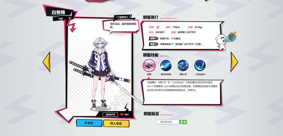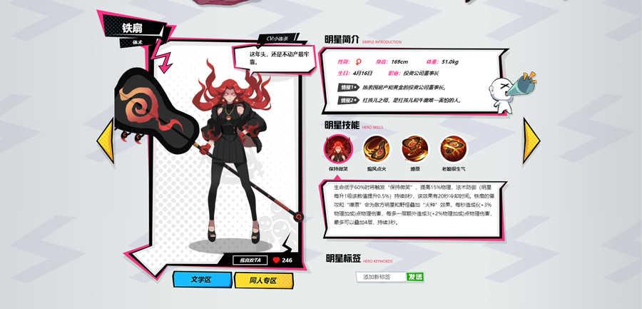 没错,这货的人设创意竟源自火柴!性格暴躁的红孩儿,愤怒时便会选择自燃——头部燃起火焰,战力Max!人设上,红孩儿以坏学生形象示人,略带脾气的眼神和动作,让人望而生畏。游戏中,红孩儿以火焰拳为主要攻击方式,具备优秀的的坦克和AOE能力,同时大招的刷新配合被动的回血,让他可以在战场中游刃有余的收割和生存。