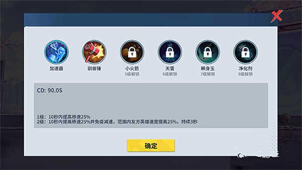 小编以初始英雄悟静作为例子。在进入游戏之前,可以选择召唤师技能,有加速器、驯兽锤、小火箭、天雷、瞬身玉、净化剂。悟静作为灵能型英雄,属于防御低,但是输出相当高,适合选择加速器、瞬身玉。可以用于逃跑、追击敌人时使用。