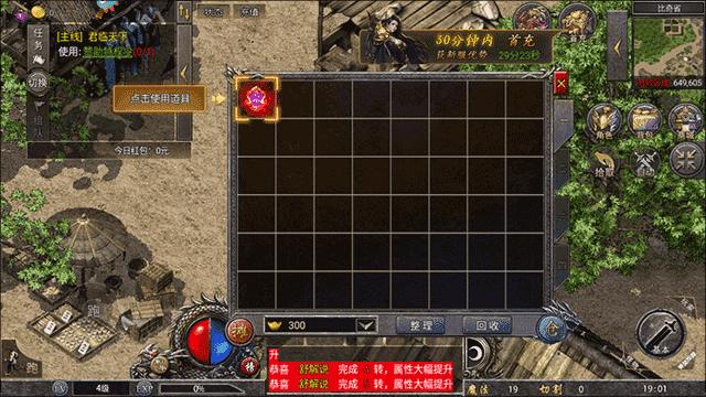 狂暴之力:通过花费2000灵符开启狂暴buff,玩家将获得一系列强大的属性加成,包括刀刀切割增加20000、攻魔道提升10%、对怪伤害增加20%、受怪伤害减少5%、打怪爆率提高15%。这一状态在被怪物击杀或玩家下线时不会消失,确保玩家在享受加成的同时,无需担心状态丢失。狂暴buff的有效时间为每日23:00至06:00,期间被击杀不会掉落狂暴状态。